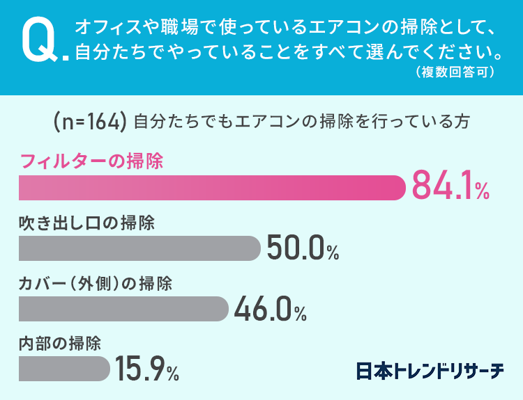 84.1%の方が、「フィルターの掃除」を自分たちで行っているようです。