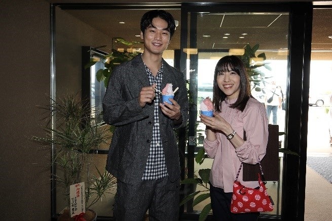 公開収録当日は、中川大輔さんとアナウンサーの新保友映さんが、当日開業を迎えた『TSUTAYA BOOKSTORE 常総インターチェンジ』を訪問。併設された親子の全天候型あそび場「kusu-guru kids park(運営:東和観光開発(株))」やジェラートショップ「SENDA BANDA(運営:TODA農房常総(同)、当社子会社)」を訪れ、自社栽培のいちごや地域の旬の素材を使ったジェラートの試食などを行いました。続いて、屋外の子どもあそび場を特設会場として公開収録を実施し、常総市の西田将人副市長、『TSUTAYA BOOKSTORE常総インターチェンジ』の今井剛志館長、当プロジェクトを指揮した当社地域価値創生部長の飯田勝の3名が、中川さんとトークセッションを行いました。