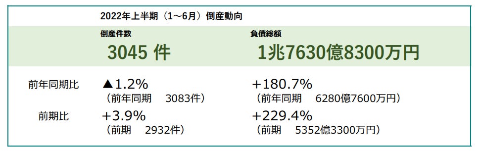倒産件数は3045件、上半期として5年連続の減少 ―全国企業倒産集計2022年上半期報