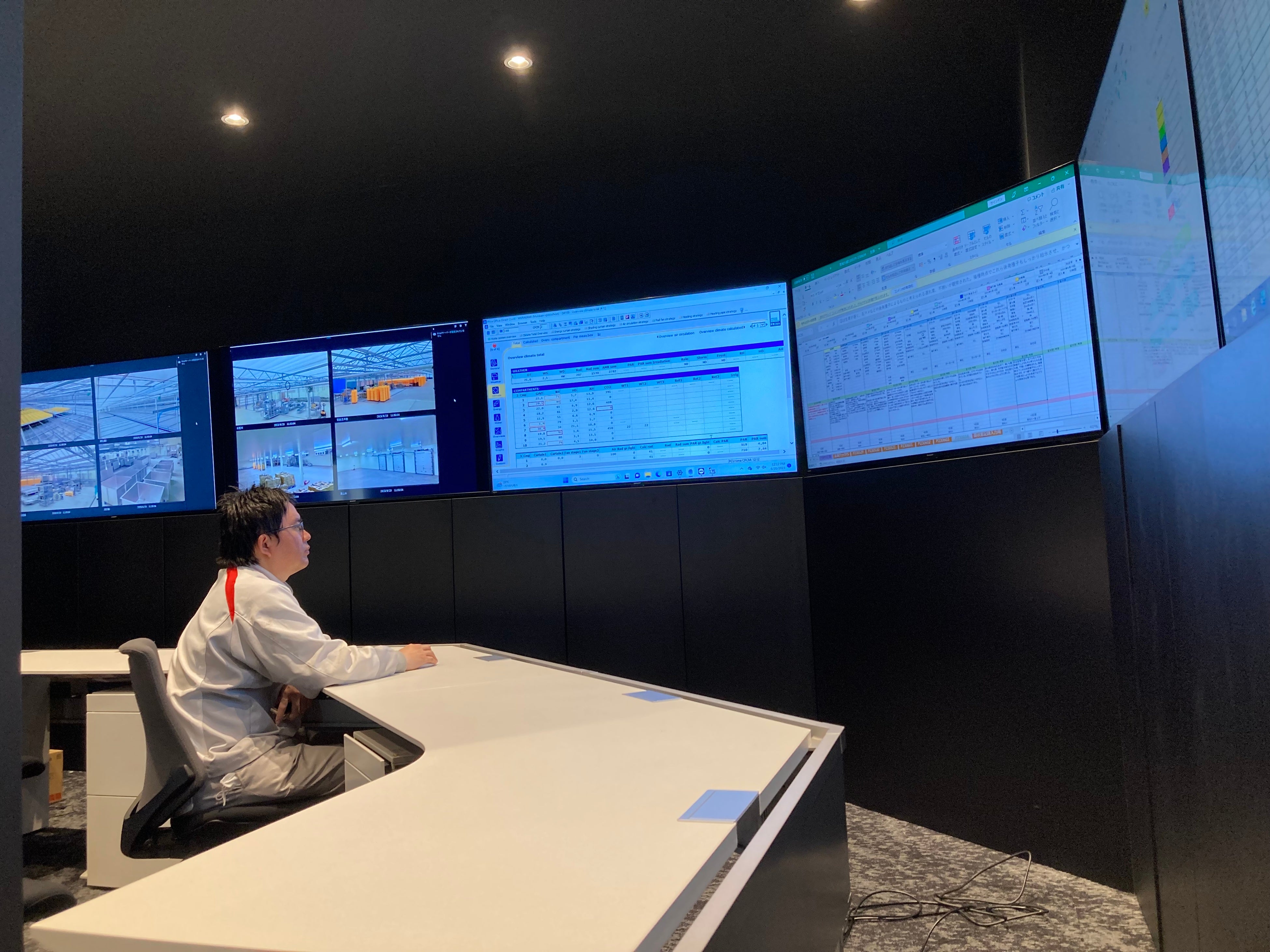 栽培エリアの各所に設置したセンサーで栽培状況をリアルタイムでモニタリングし、栽培プログラムや施設内の環境を一括管理します。また、各所に設置したカメラのモニタリングにより、全ての作業をコントロールすることが可能です。