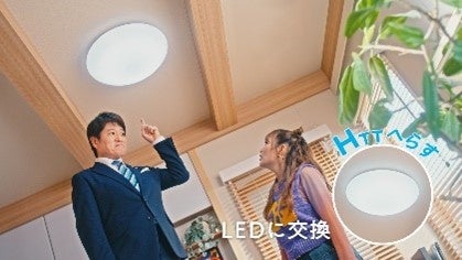 さらに、リビングでは「こんな照明も、LEDに変えると、HTT!」と、ここでも蛍光灯をLED照明に取り替えます。ねおさんは「今やるんですか…?」とポカンとしますが、「でも…助かります!」と喜びます。林さんは「でしょ~?」と得意げな顔を披露します。最後は二人で「やってますか?HTT!」と呼びかけます。