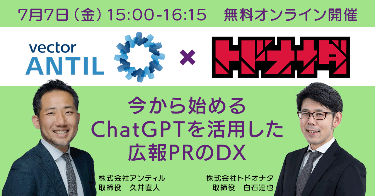 本セミナーは、アジアNo.1のPR会社ベクトルグループの株式会社アンティル 久井直人氏とPR効果測定サービスQlipperを運営する株式会社トドオナダ 白石達也氏が、今年後半のPR活動がよりよいものになるようポイントを整理してお伝えします。