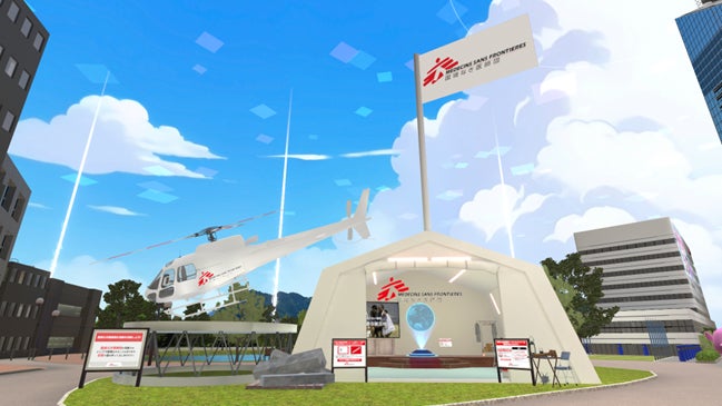 企業向け会場の「パラリアル福岡」に設置されるMSFのブースは、「すべての人に医療を!」をコンセプトとした、命の危機が起きている世界中の現場にいち早く駆け付けるための拠点の1つ。来場者は、展示を見る他、ゲームへの参加や写真撮影などバーチャル空間ならではの体験を通して、MSFの医療・人道援助活動や、いかなる権力からの影響も受けず、医療を必要とする場所へ援助を届けるための「民間からの寄付」の重要性に対する理解を深めることができます。