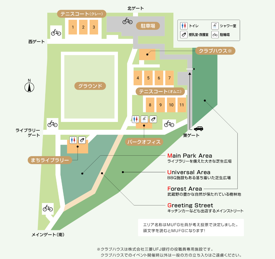 「MUFG PARK」は、古くから生活と自然が密接している武蔵野の地に開園いたします。大きな芝生広場やテ