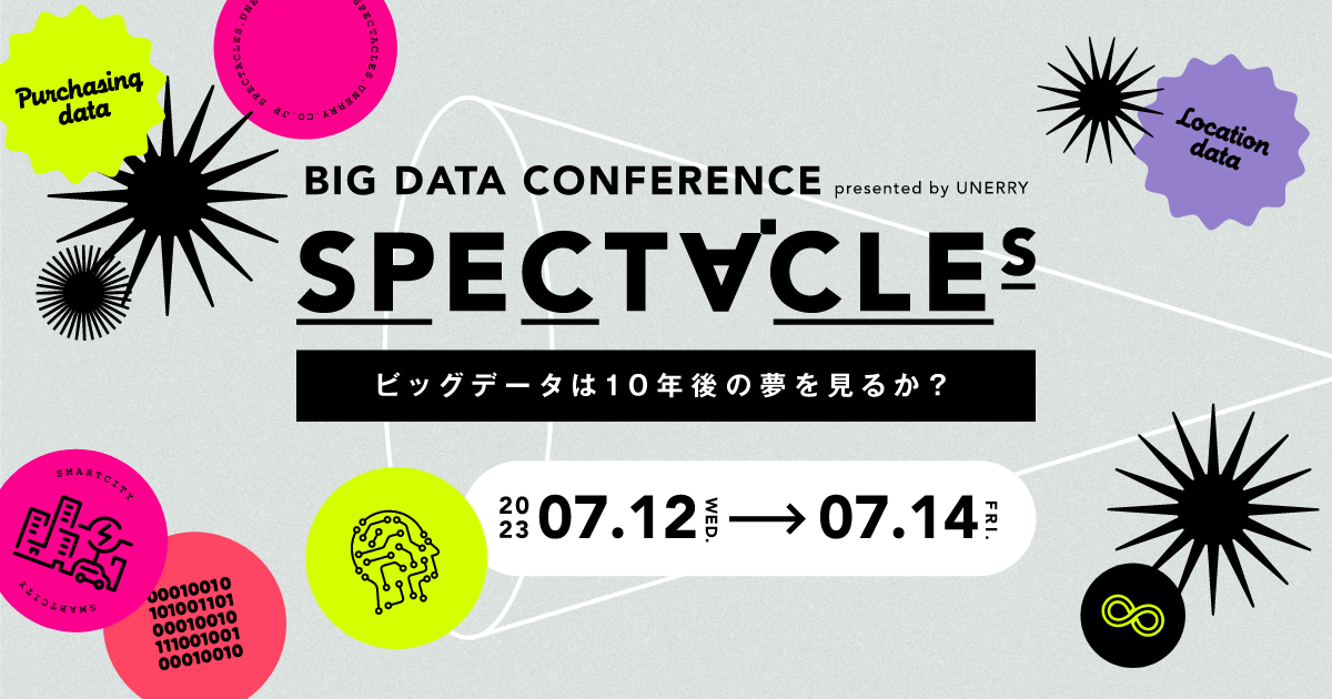 「SPECTACLEs」特設イベントページはこちら ビッグデータカンファレンス「SPECTACLEs 」 presented by unerry, Inc. 7月12日から14日の3日間、業界・分野を超えた最先端事例や業界リーダーが続々登場!