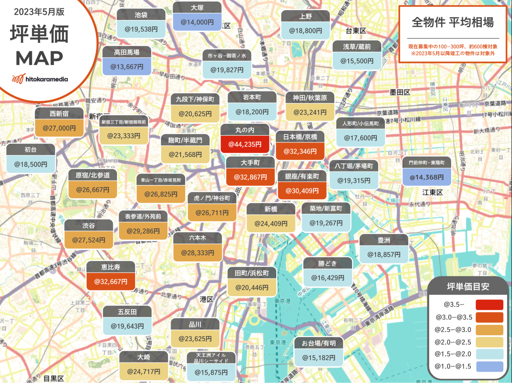 ▼オフィスビルのトレンドと街の未来が見えてくる! オフィス坪単価マップ [2023年度 首都圏版]