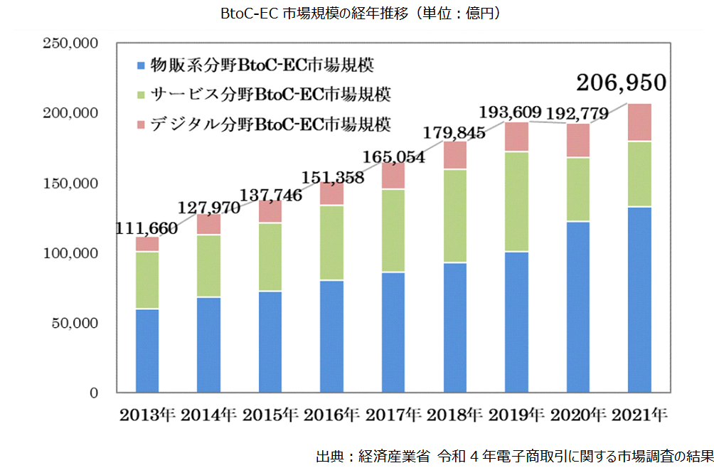 国内において拡大を続ける電子商取引市場(※参考資料1)は今後まだまだ拡大することが予想されています。熊本市とBASE株式会社は、こうした授業を市内の高校に提供することで、インターネットサービスを適切・効果的に活用し、将来、熊本市でビジネスの諸活動や地域活性化に取り組む人材を育成することを目指します。