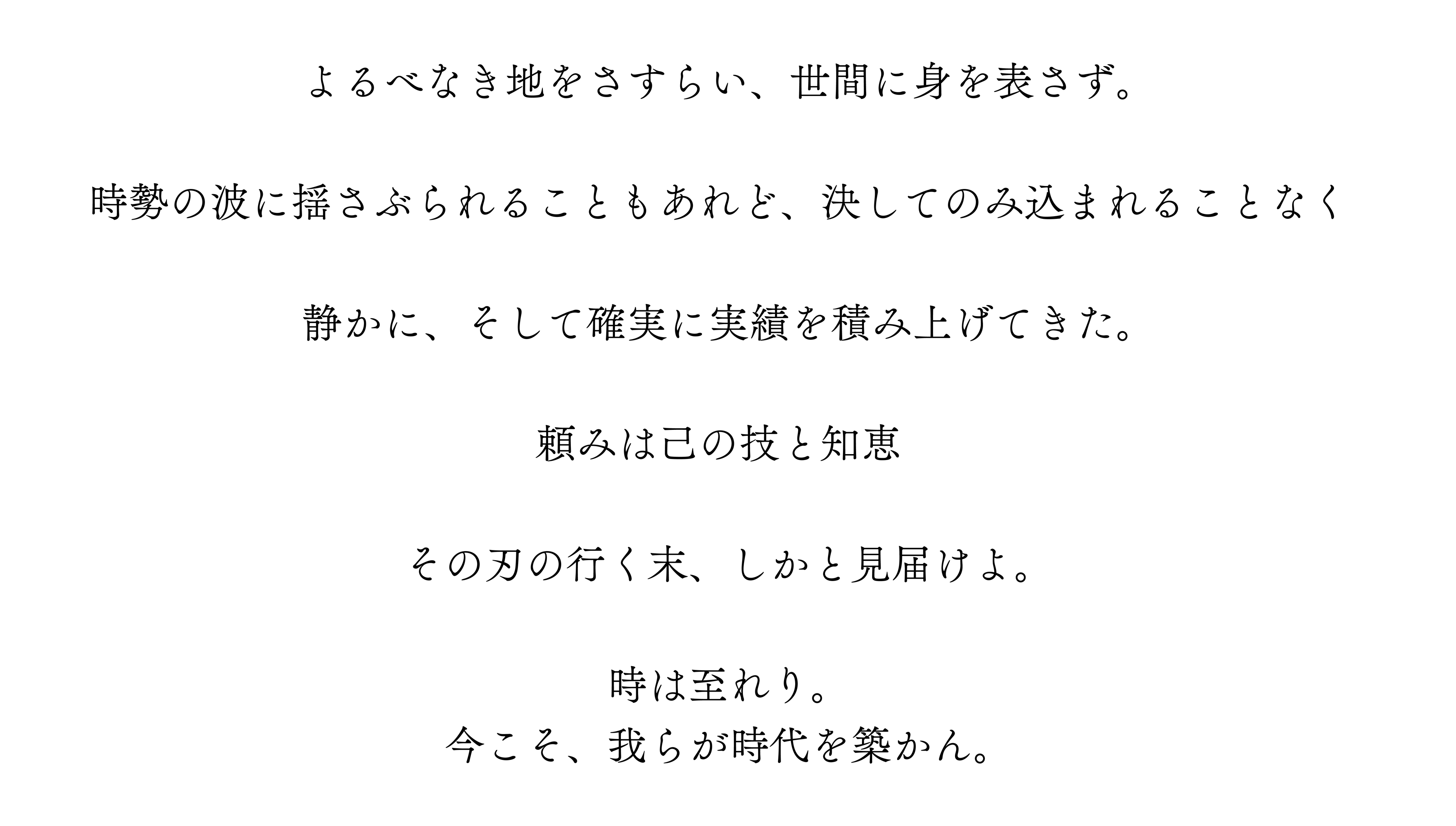 挑戦は、時に危険を伴います。決して、楽しいだけの道のりではありません。しかし、結果が出たとき、人生を懸けた「挑戦」は、最高のドラマを生みだします。私たちは、それを、人生を懸けた「最高のエンタメ」と称しています。