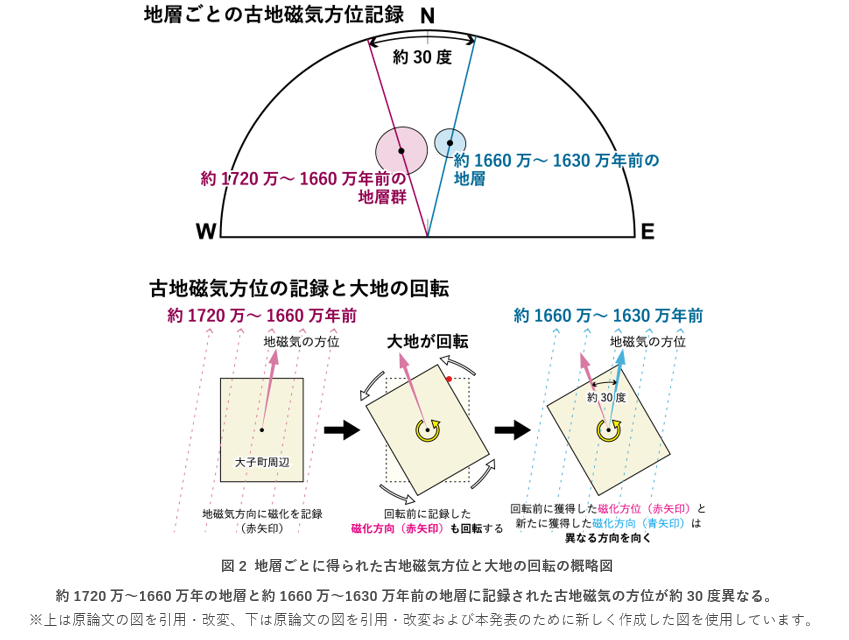 国立研究開発法人 産業技術総合研究所(以下「産総研」という)地質情報研究部門 細井 淳 主任研究員と羽田 裕貴 研究員、茨城県立茨城東高等学校 谷井 優理恵 教諭、茨城大学理学部 岡田 誠 教授による研究チームは、茨城県大子町周辺の地質調査および地層に記録されている過去の地磁気(古地磁気)方位を解析し、約1720万~1660万年前、棚倉断層帯の運動が堆積盆の形成・沈降(リフティング)と回転を同時に引き起こしたことを発見しました。