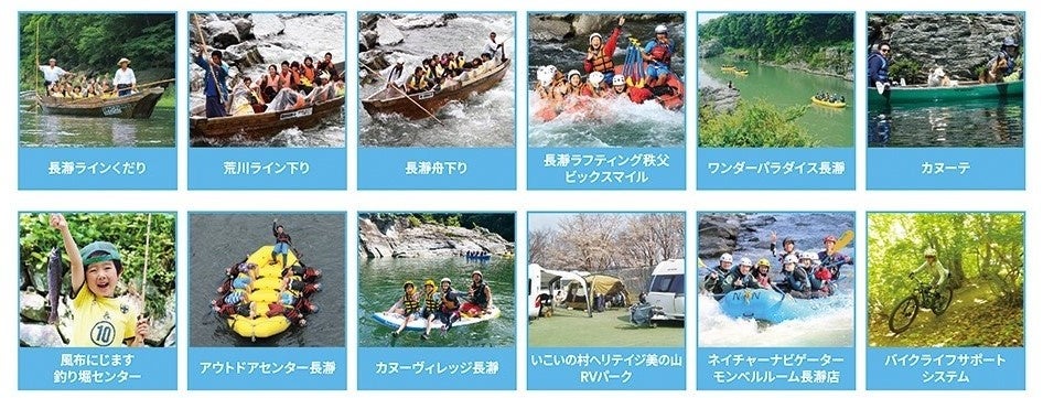 長瀞ラインくだり・荒川ライン下り・長瀞舟下り・長瀞ラフティング秩父ビッグスマイル・ワンダーパラダイス長瀞・カヌーテ・風布にじます釣り堀センター・アウトドアセンター長瀞・カヌーヴィレッジ長瀞・いこいの村ヘリテイジ美の山RVパーク・ネイチャーナビゲーターモンベルルーム長瀞店・バイクライフサポートシステム