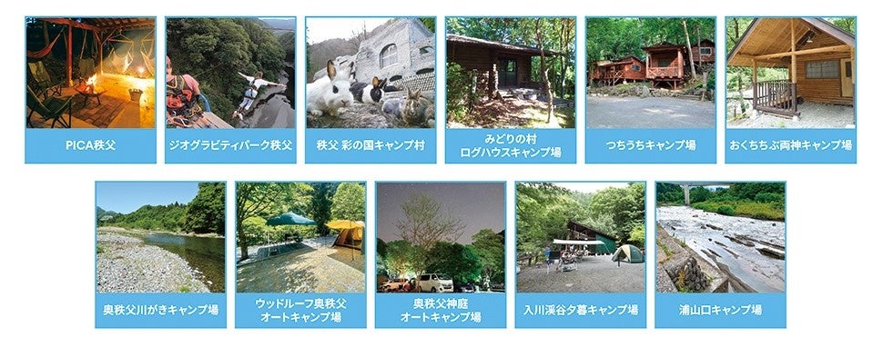 PICA秩父・ジオグラビティパーク秩父・秩父 彩の国キャンプ村・みどりの村ログハウスキャンプ場・つちうちキャンプ場・おくちちぶ両神キャンプ場・奥秩父川がきキャンプ場・ウッドルーフ奥秩父オートキャンプ場・奥秩父神庭オートキャンプ場・入川渓谷夕暮キャンプ場・浦山口キャンプ場