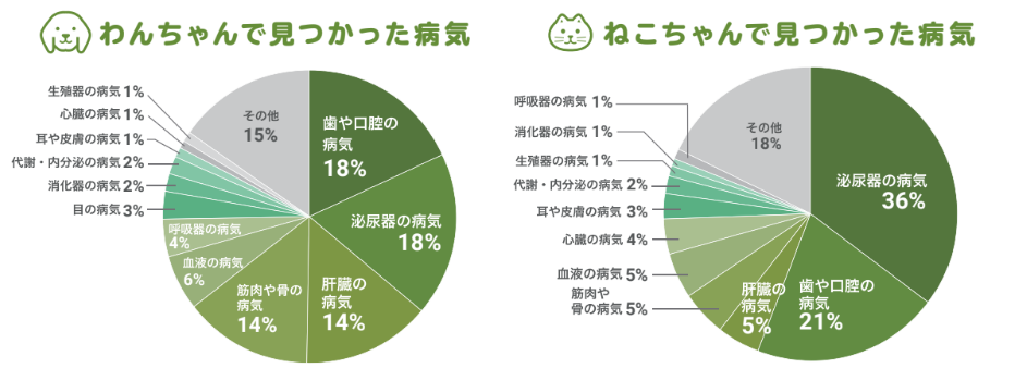 2022年度の「ペットドック」では、以下の通り※病気の早期発見・治療につながりました。