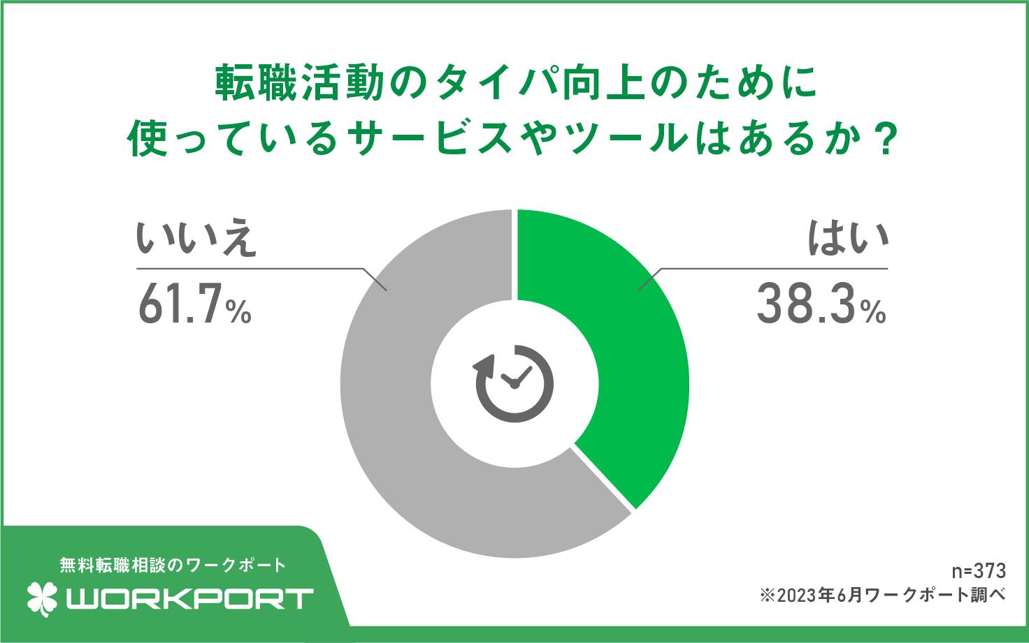 最後に、対象者全員に転職活動におけるタイパを良くするために使っているサービスやツールはあるか聞いたところ、4割近くにのぼる38.3%の人が「ある」と回答しました。