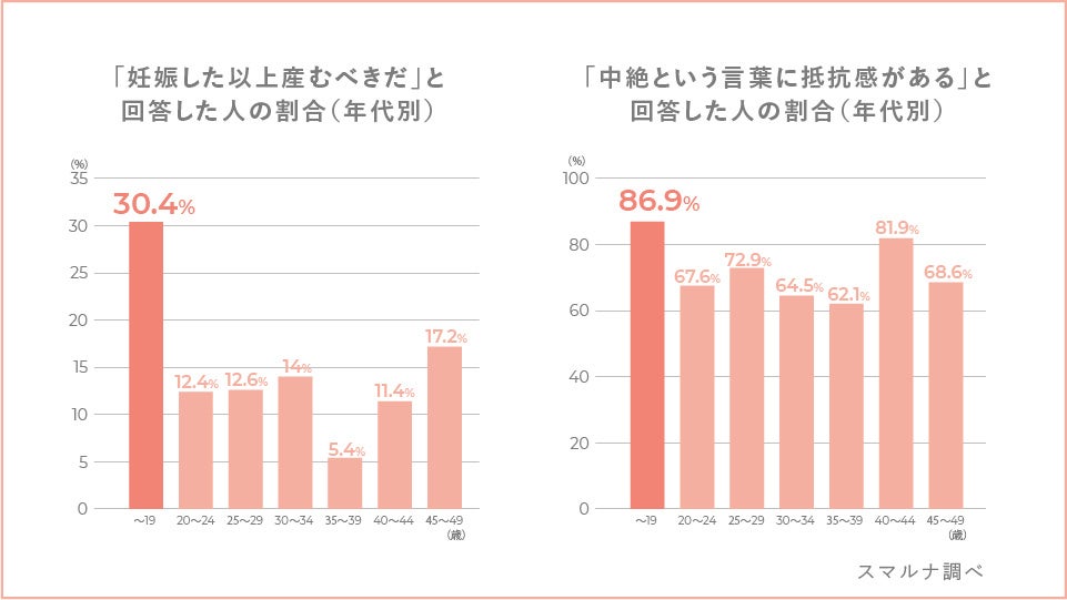「中絶という言葉に抵抗がある」「妊娠した以上産むべきだ」と回答した人は他年代に比べ10代が突出して多い