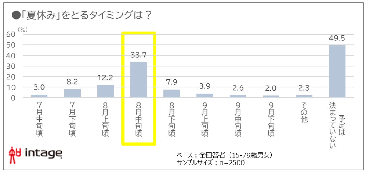 【ポイント】 ◆3人に1人は「お盆頃」に夏休みを取得する予定。なかなか分散は進まず。 |
