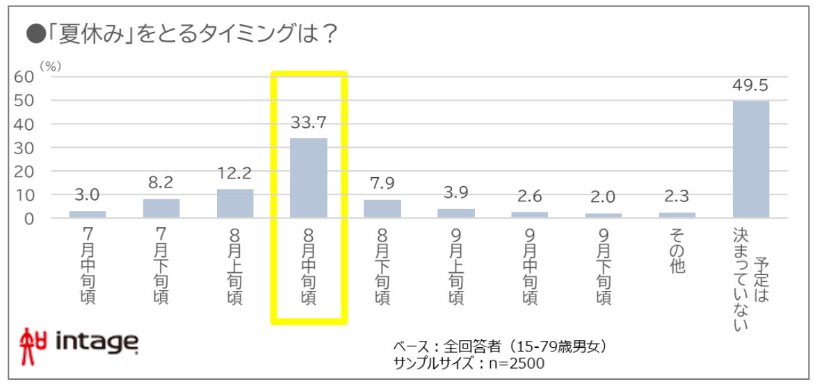 【ポイント】 ◆3人に1人は「お盆頃」に夏休みを取得する予定。なかなか分散は進まず。 |