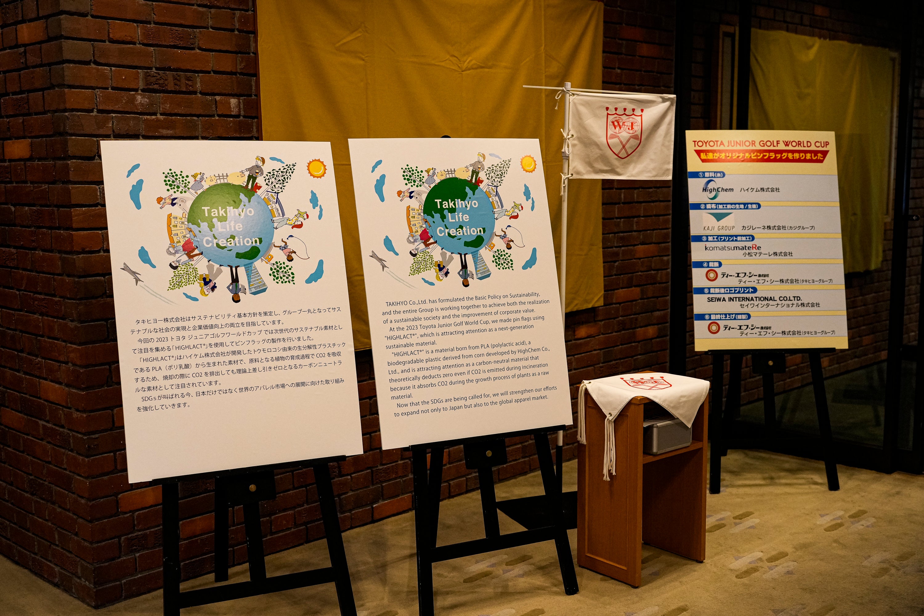 1751 年創業の繊維商社タキヒヨー株式会社(本社:名古屋市⻄区、代表取締役 社⻑執⾏役員:滝 一夫)は、世界中から集まった20 のナショナルチームが世界一を競い合う「2023 トヨタジュニアゴルフワールドカップ」に、次世代のサステナブル素材PLA(ポリ乳酸)から生まれた繊維「HIGHLACT®」を使用したオリジナルピンフラッグを提供しました。