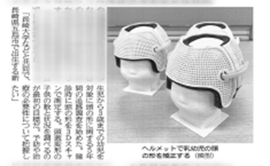 「長崎大学などと共同で、長崎県五島市で出生する新生児から3歳までの幼児を対象に頭の形に関する5年間の追跡調査を始めた。健診時に頭の形を3Dスキャンで測定する。頭蓋変形の子供の数と状況を調べるのが最初の目標だ。予防や治療の必要性について把握したい」