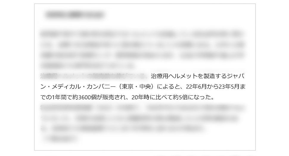 治療用ヘルメットの販売数も伸びている。治療用ヘルメットを製造するジャパン・メディカル・カンパニー(東京・中央)によると、22年6月から23年5月までの1年間で約3600個が販売され、20年時に比べて約5倍になった。