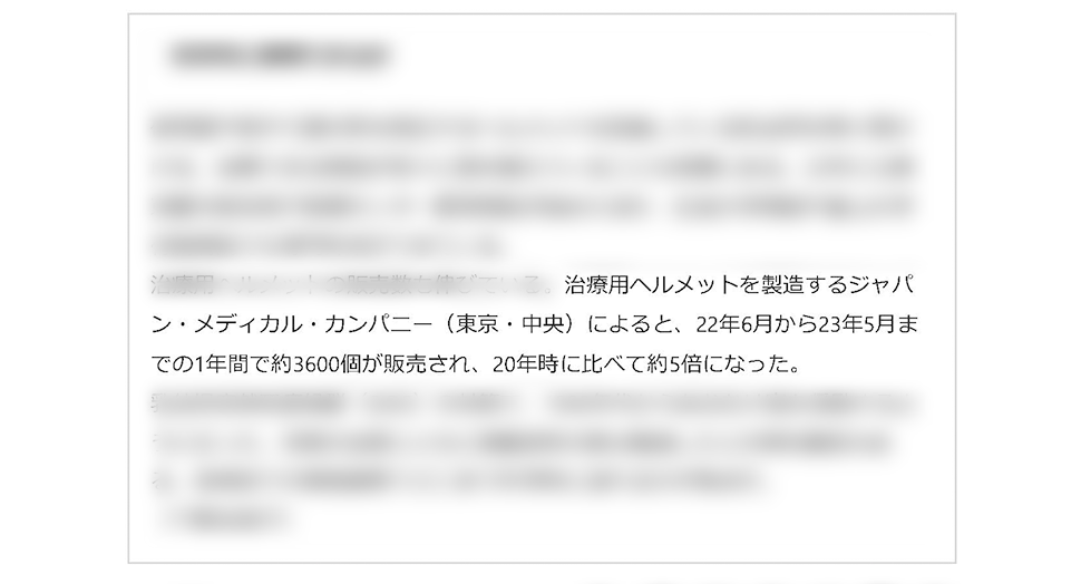 治療用ヘルメットの販売数も伸びている。治療用ヘルメットを製造するジャパン・メディカル・カンパニー(東京・中央)によると、22年6月から23年5月までの1年間で約3600個が販売され、20年時に比べて約5倍になった。