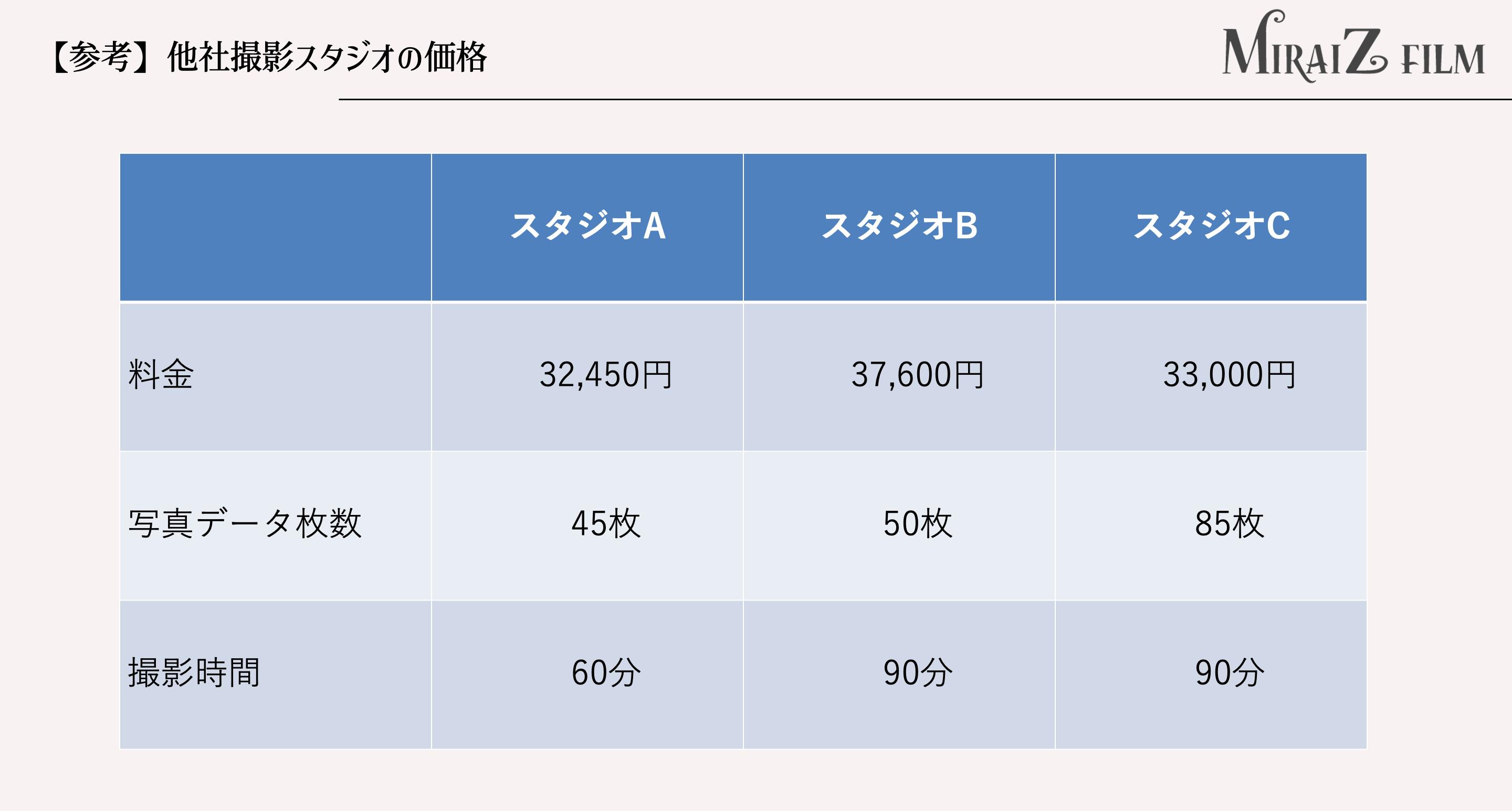 「MiraizFilm」を立ち上げたきっかけの一つに、一般的な写真スタジオでは高額な