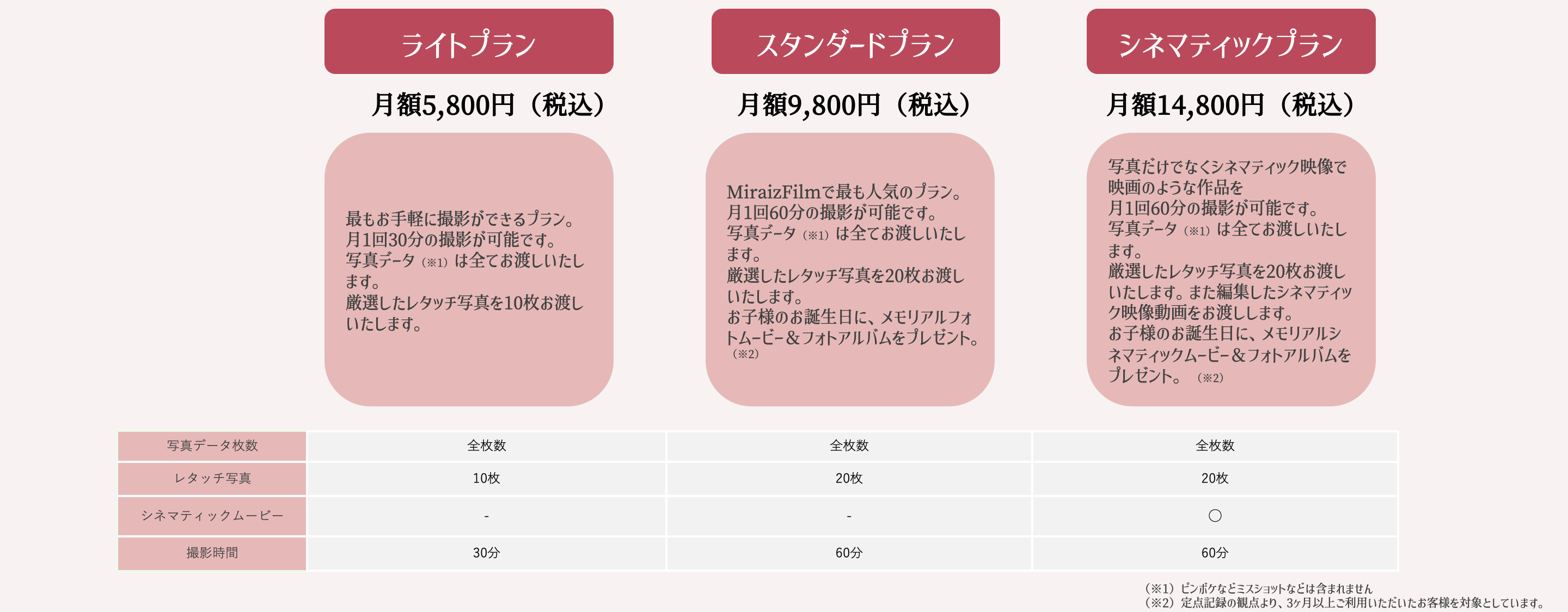 お子さまの成長を高品質で記録するための写真・映像撮影サブスクリプションサービスです。