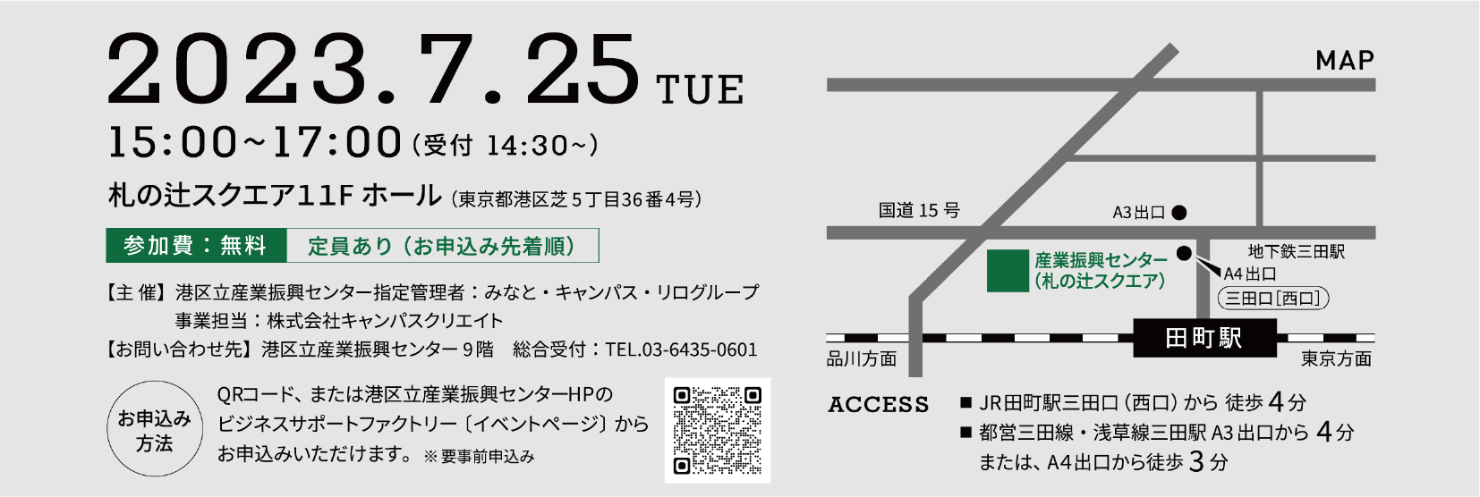 開催日:2023/7/25(火)15:00~17:00(受付14:30~)
