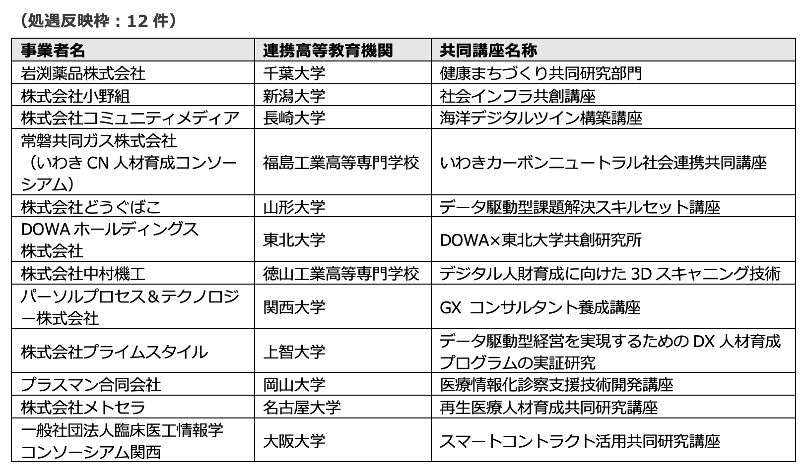 【令和4年度 ⾼等教育機関における共同講座創造⽀援事業費補助⾦ 採択事業者(五十音順)】