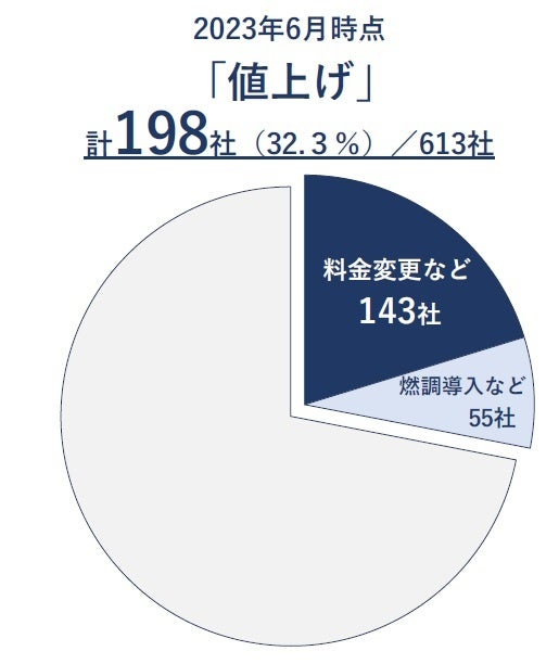事業を継続している613社の動向をみると、198社(構成比32.3%)が「値上げ」の動きを取っていることがわかった。