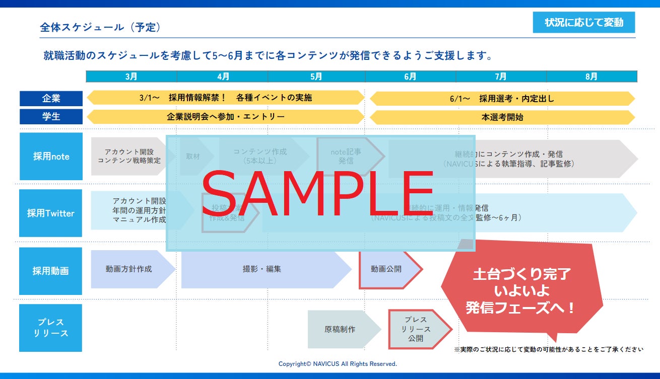 NAVICUSの提供する「採用SNS」サービスでは、自分たちの言葉で語ることに適しているnoteや情報拡散に適した他SNSをはじめ、採用サイトや動画まで幅広くご支援させていただきます。
