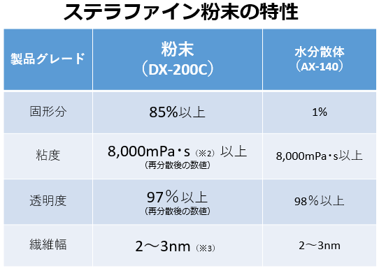 (※1)液体に溶かした際に粉体の粒子が凝集せずに均一に分布する性質