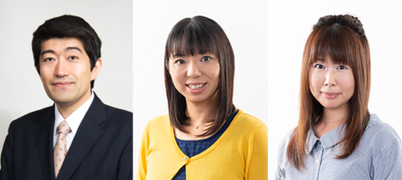 (写真)左から 解説/森内俊之九段 聞き手/本田小百合女流三段 読み上げ/高浜愛子女流1級