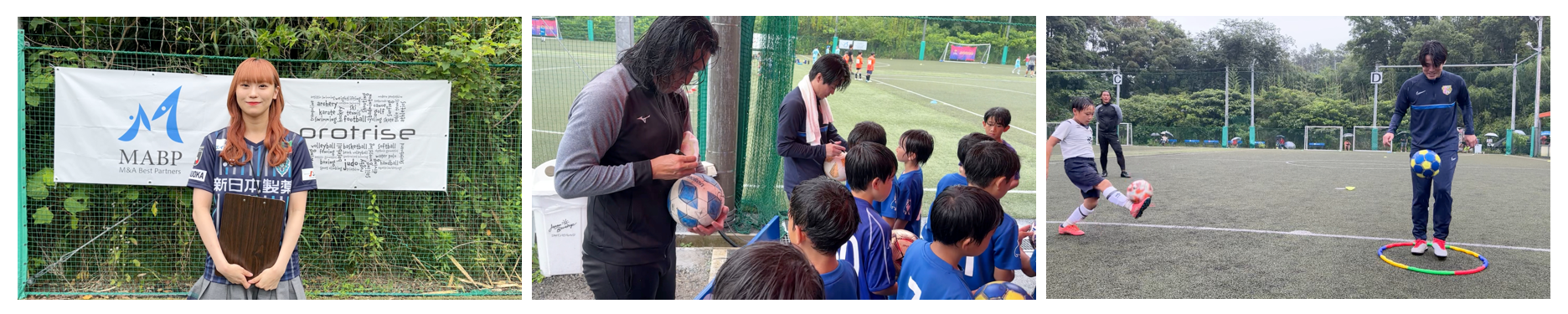 また、本大会には特別ゲストとして、元名古屋グランパスの増川隆洋さん、元FC東京の馬場憂太さん、HKT48の豊永阿紀さんにお越しいただき、ミニイベントとして、リフティング大会、PK対決、ドリブル競争を行い、大会に参加した子供たちとの交流を図りました。