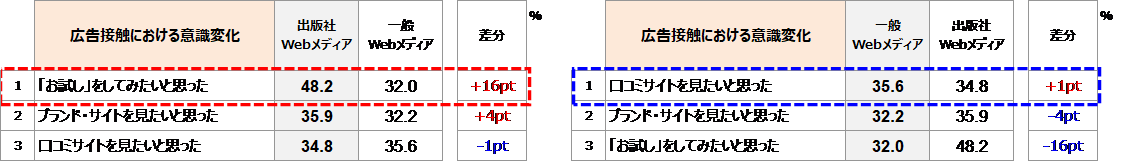 出版社Webメディアのユーザーは、広告接触後に、“お試し”意向が向上。
