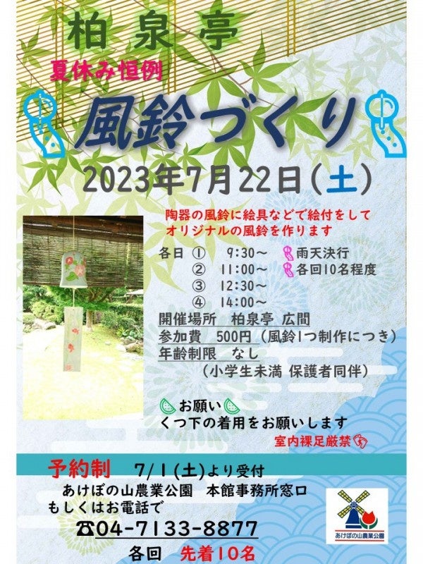 お問合せ:本館事務所 04‐7133‐8877(休園日を除く9:00~17:00)