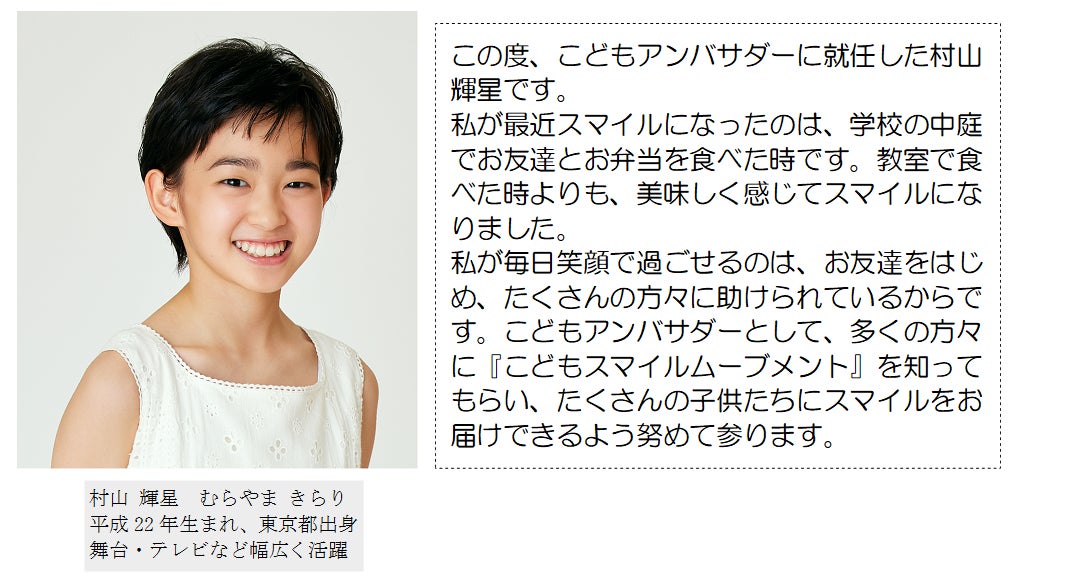 このたび、本ムーブメントをさらに広げていくため、タレントの村山輝星さんにこどもアンバサダーにご就任いただくとともに、子供の声によるロゴマークの選定を行いますので、お知らせします。