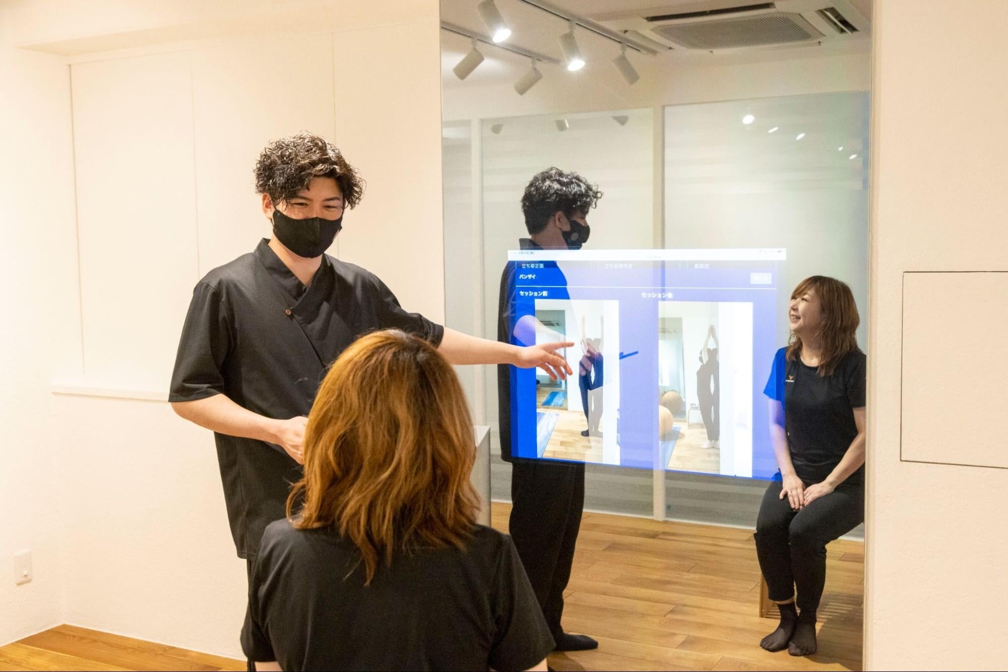 最新技術のミラーディスプレイも導入し、施術前後で自分の身体がどう変わっていったかも共有します。