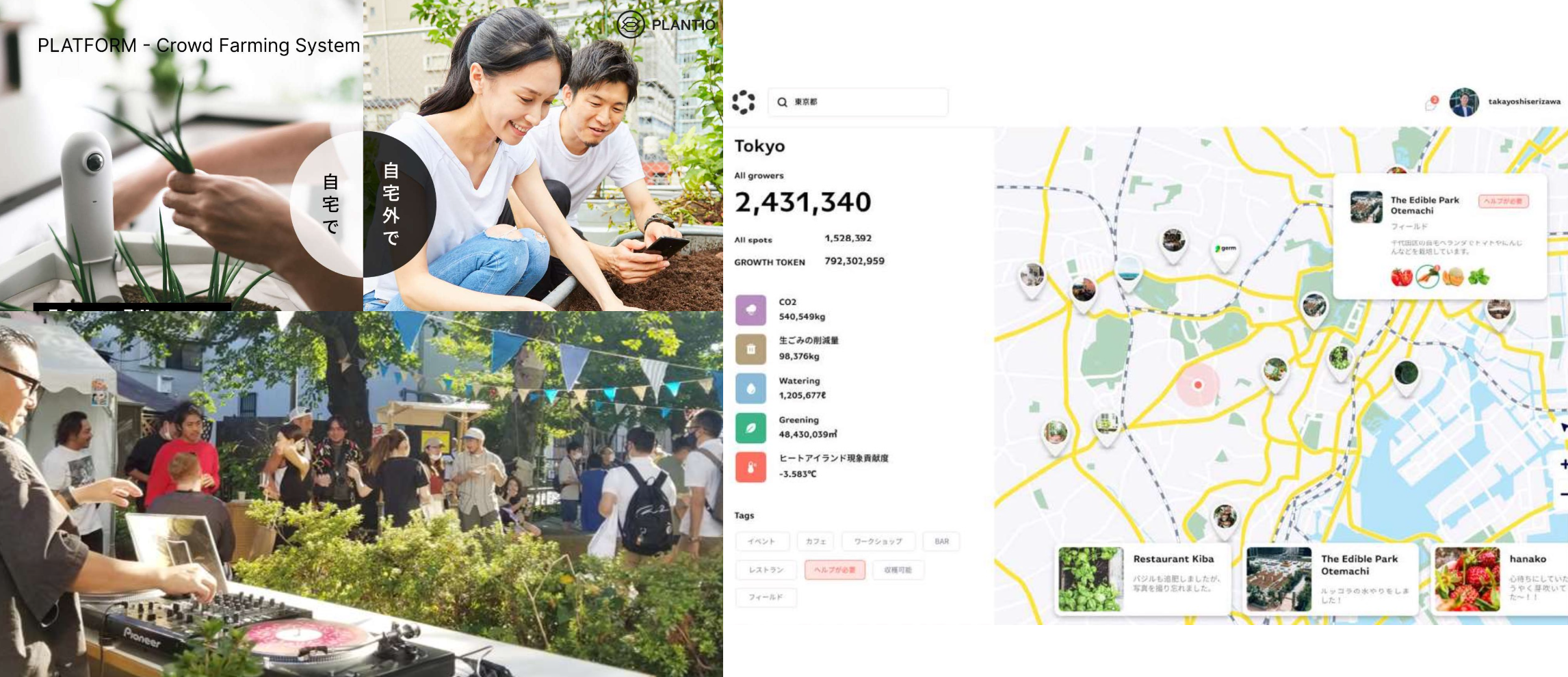 渋谷のスタートアップ企業プランティオ様と連携し、屋上空間のサスティナブルな活用を推進しております。屋上農園を楽しむコミュニティパワーとグリーン化によるカーボンオフセットへの貢献ができることが重要な要素になります。