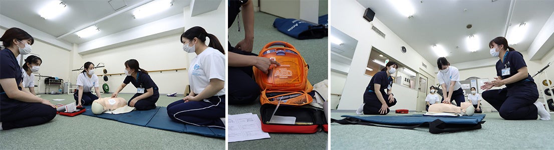 この取り組みは職員だけでなく、当法人が提供する「健康クラブ」にご登録いただいている企業様に対しても、年に一度「AED救命講習」を無料で実施しています。