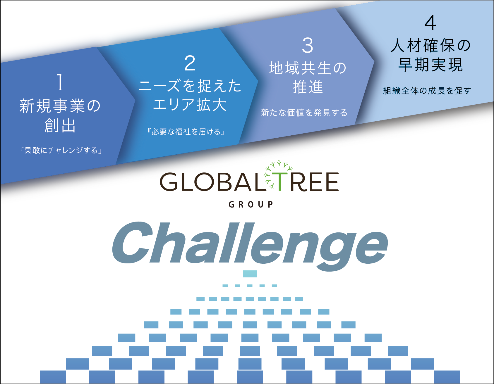 今年度における「訪問看護事業 グローバルナーシング」や、就労継続支援B型で運営する飲食事業「グローバルカフェ」などの例にあるように、グループ全体の福祉事業を見渡した時、新たな顧客ニーズや時に盲点ともなる課題、福祉が行き届いてないエリア事情などを目の当たりにする実情があります。それらをカバーするための事業創出に、果敢にchallengeしていく所存です。