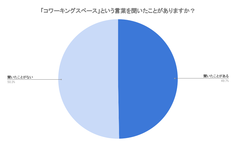 「『コワーキングスペース』」という言葉を聞いたことがありますか?」という問いに対して、「聞いたことがある」という回答は49.7%、「聞いたことがない」という回答は50.3%という結果になりました。