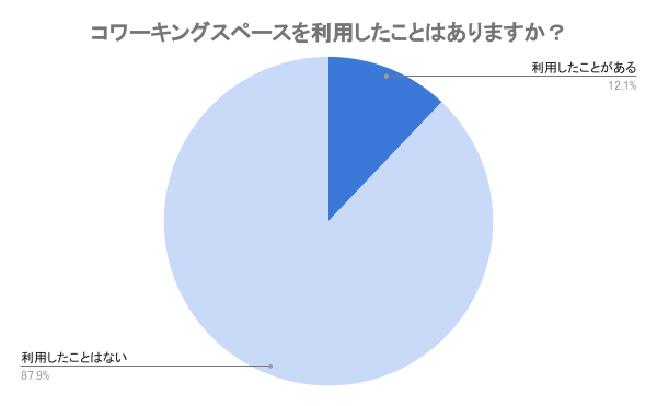 「コワーキングスペースを利用したことはありますか?」という問いに対して、「利用したことがある」という回答は12.1%という結果になり、言葉として聞いたことはあるが利用したことはない、という方が多いことが分かります。
