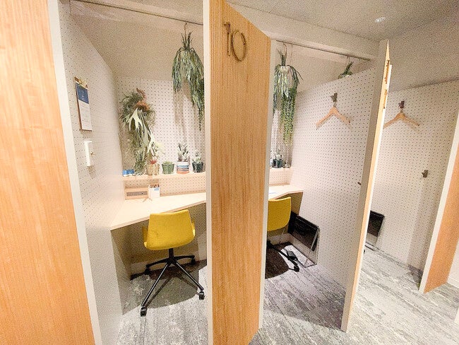 ブース内にはハンガーやちょっとした荷物を掛けられるフック、折り畳み式の荷物置きを設置。快適に過ごせる個室空間です。