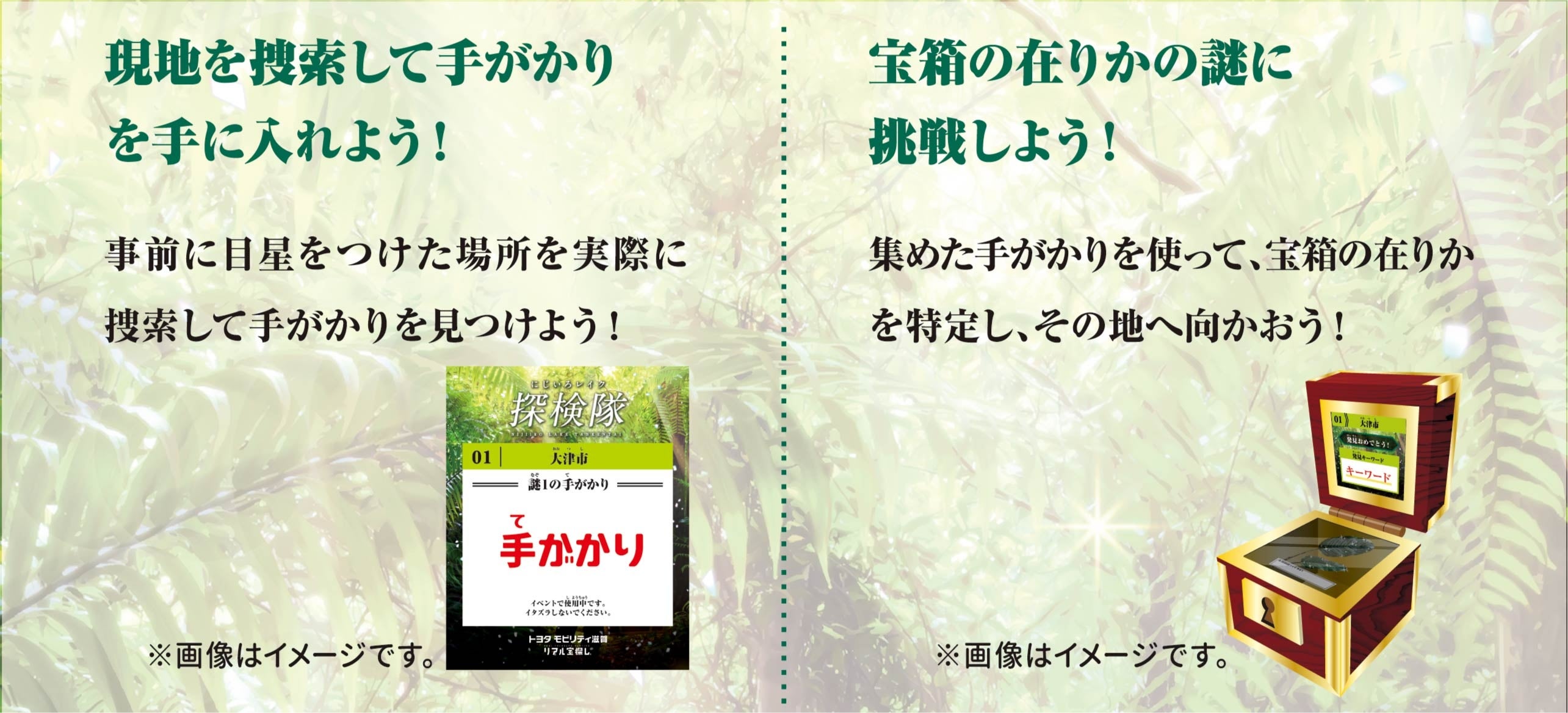 当イベントへの参加には、宝の地図(参加冊子)が必要です。入手方法は2つ。①トヨタモビリティ滋賀の店頭で受け取り ②WEBサイトからダウンロード