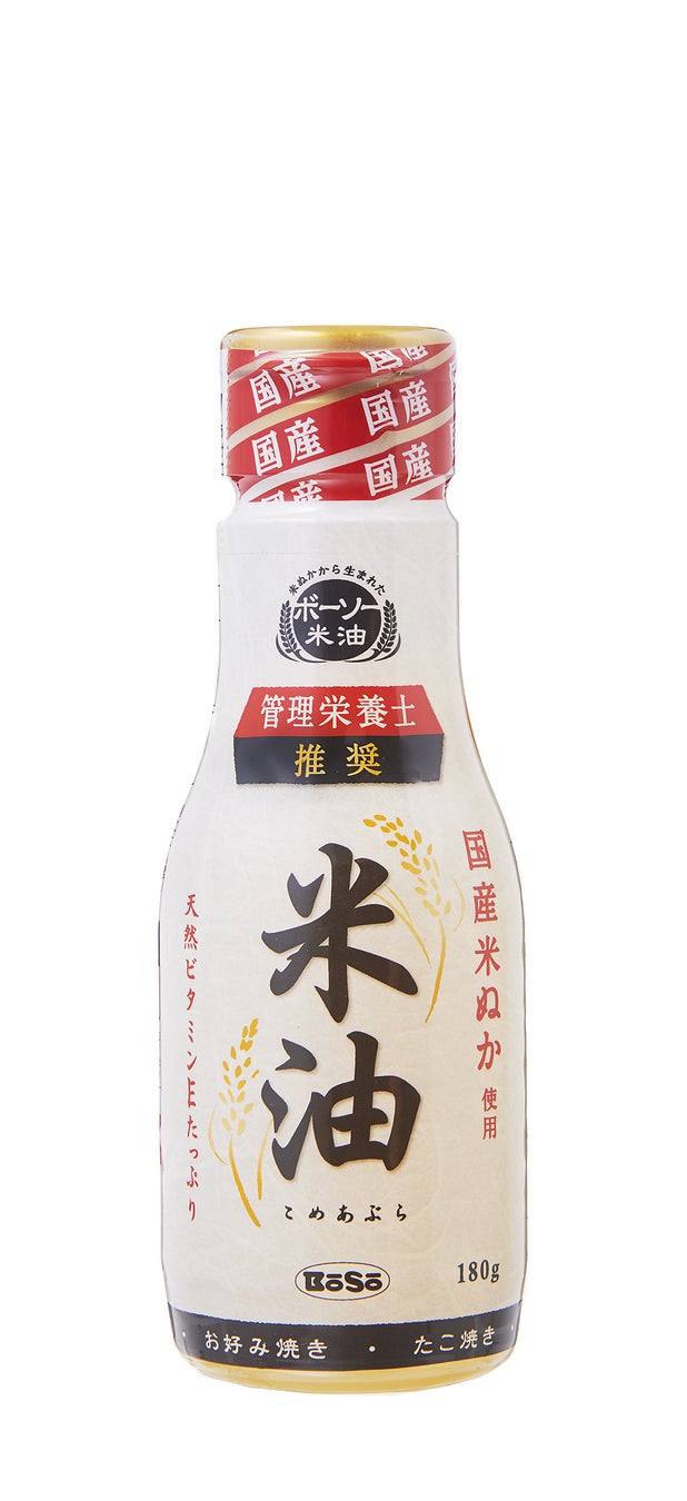 ボーソー米油(上:850g 下:180g):原材料は国産米ぬかにこだわり、米ぬか由来の天然栄養成分が豊富です。酸化しにくく美味しさが長持ちして、どんな料理にも合う万能なオイルです。