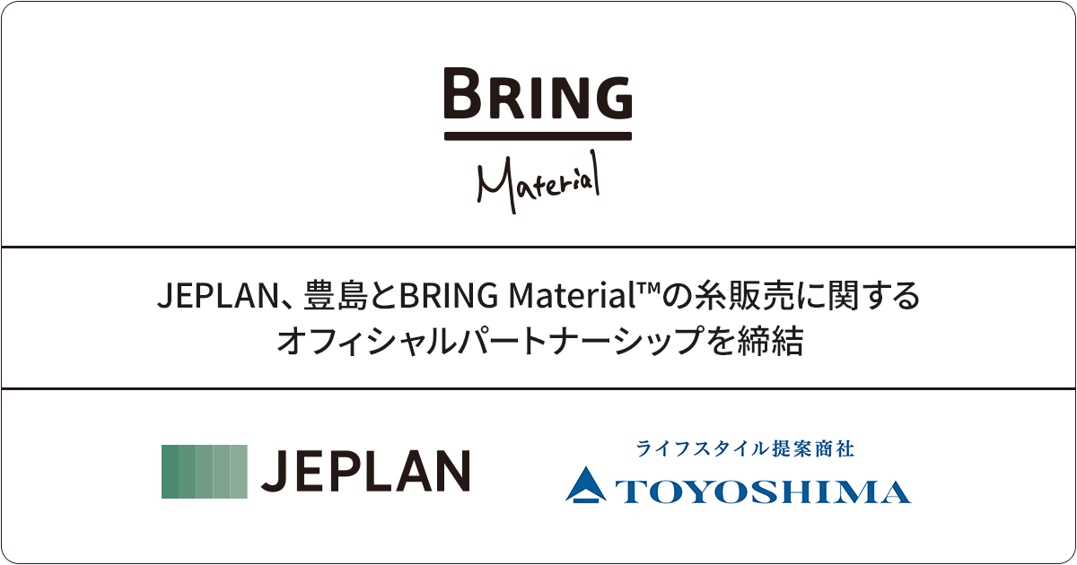 これまでBRING Materialは、アパレル製品などの原料である再生ポリエステル「樹脂」として販売してきました。今回の豊島とのパートナーシップにより、アパレル製品の素材である「糸」による供給体制が構築されます。これまで、アパレルメーカーなどが抱えていた樹脂から糸を製造する工程の削減や糸の製造ロットを抱える負担の軽減によりハードルを下げることでBRING Materialを製品に採用しやすくなることが見込まれます。これにより、多くの消費者がサーキュラーエコノミーを体現する製品に触れていただける機会にもつながると考えています。