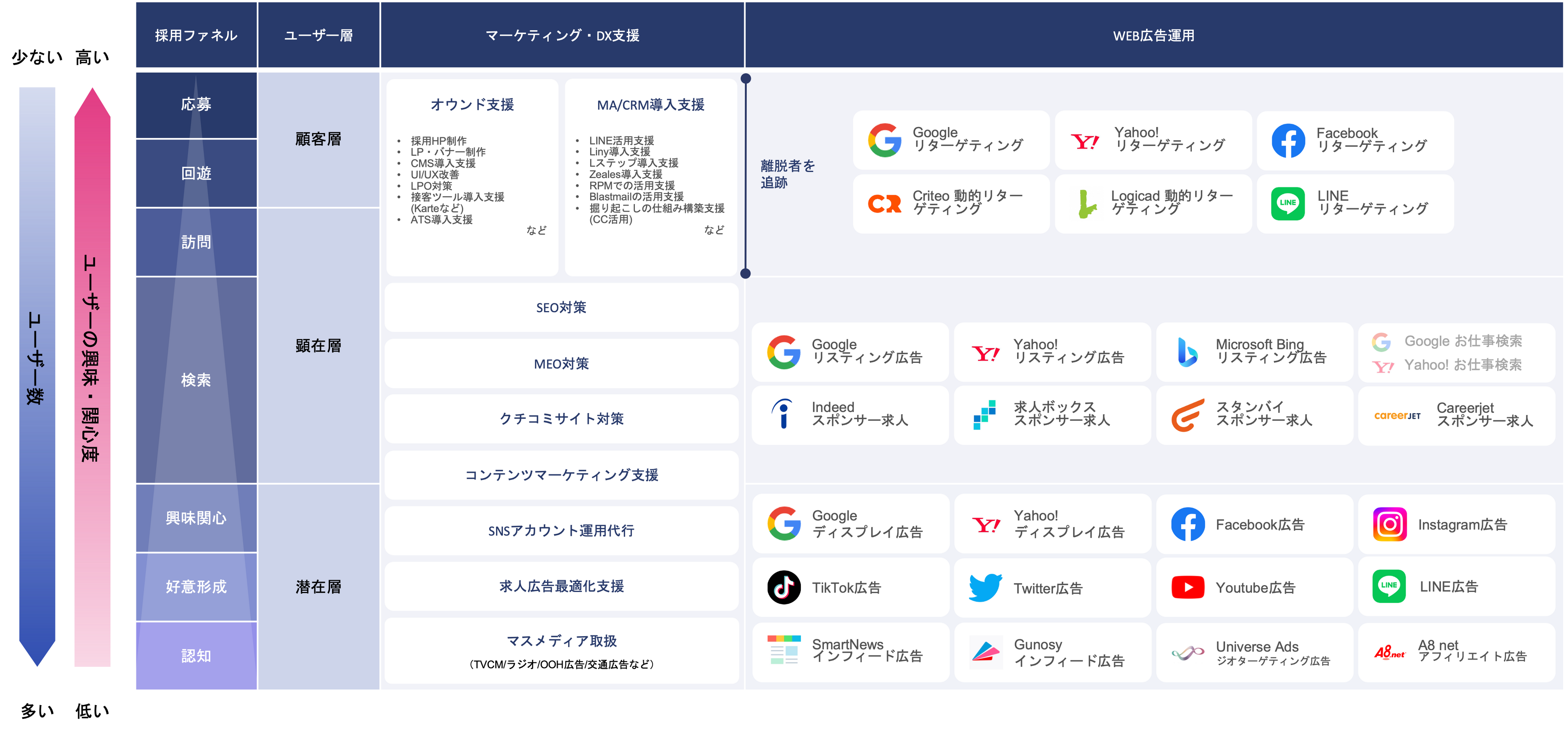 採用マーケティングフェーズを把握し、それぞれに応じた的確な施策をご提案可能。