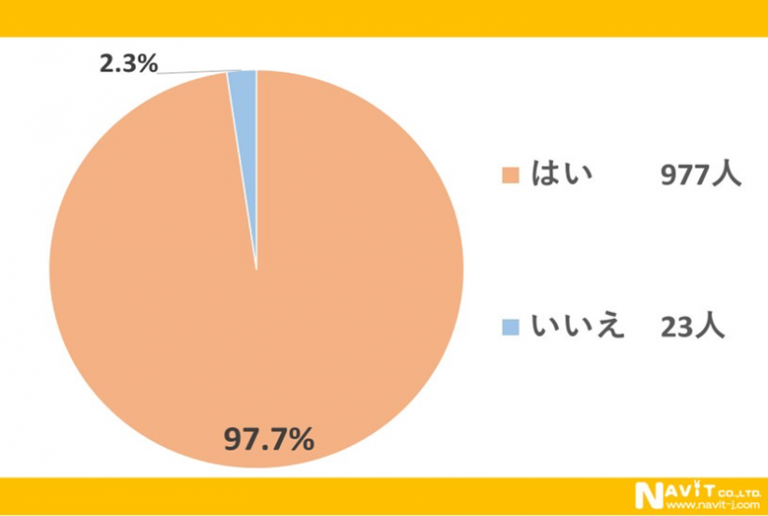 「おにぎりは好きですか?」という質問に対して「はい」と答えた方が97.7%となっています。ほとんどの方がおにぎりが好きだということがわかりました。