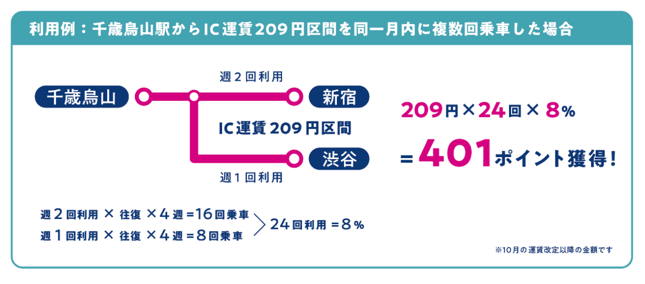 ※同一運賃区間ごとに計算した結果を合算して、総付与ポイント数を決定します。