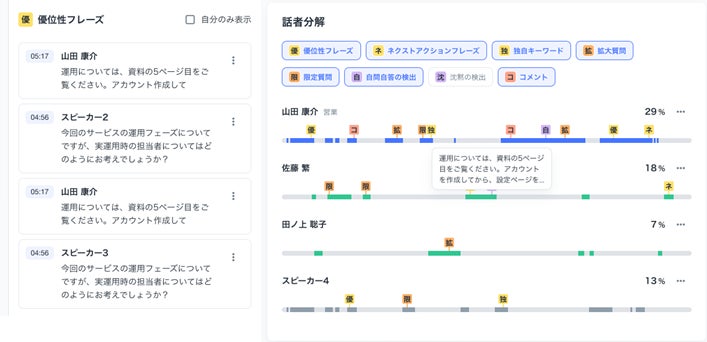 【2】商談内容を詳細に可視化。次回商談や受注につながる “優位性フレーズ“の有無を確認できる。